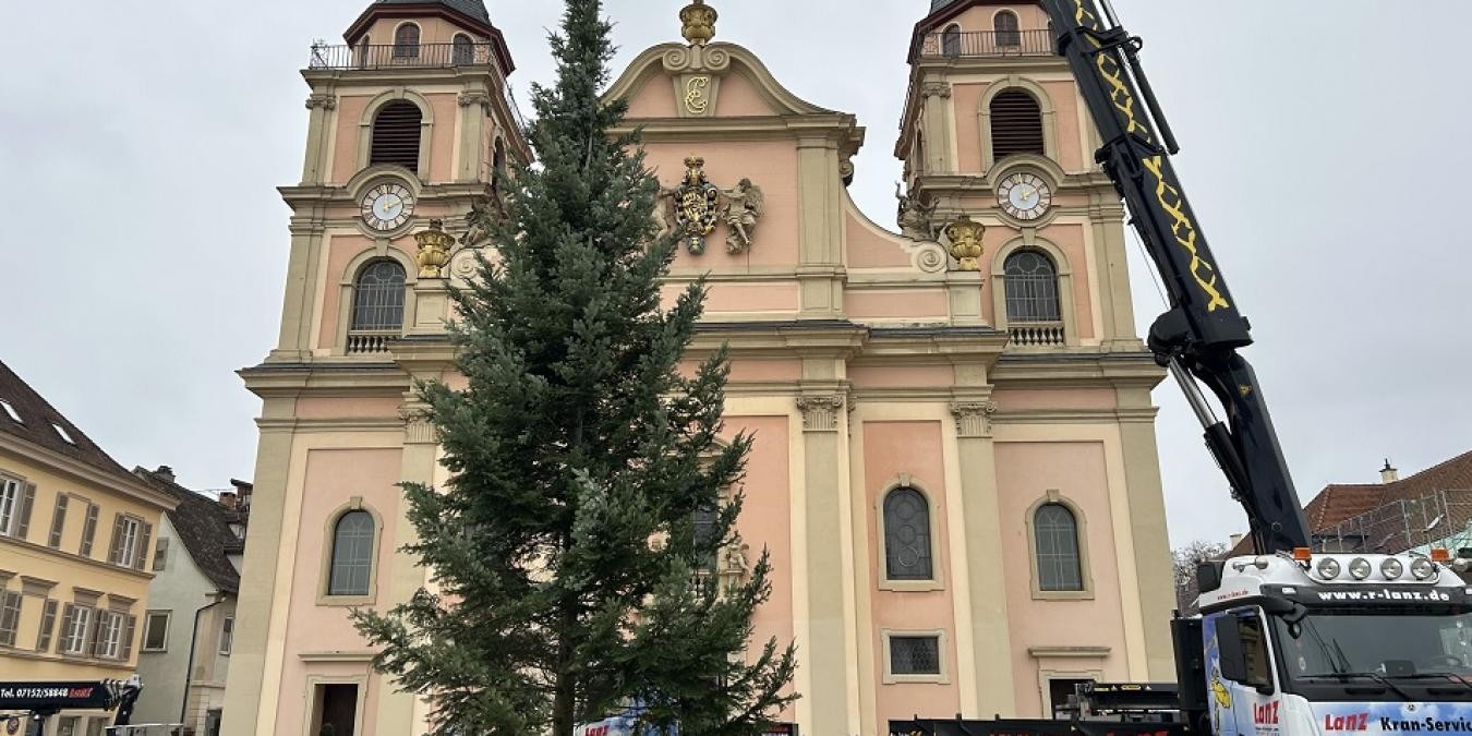 Auf dem Marktplatz wurde der große Weihnachtsbaum aufgestellt