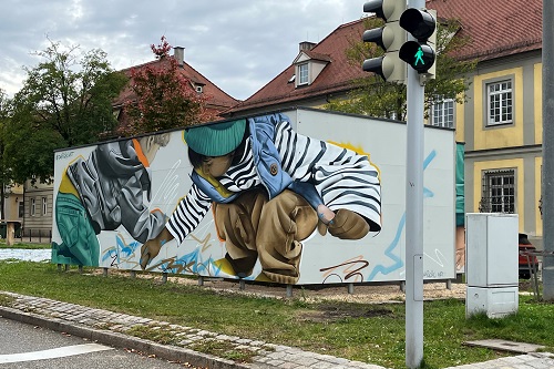 Zum besonderen Blickfang wurde das Mikrohofhaus auf der Sternkreuzung. Der Streetart-Künstler Daniel Schuster, „Daschu“, bemalte die vier Außenwände mit einer farbenfrohen Komposition spielender Kinder.