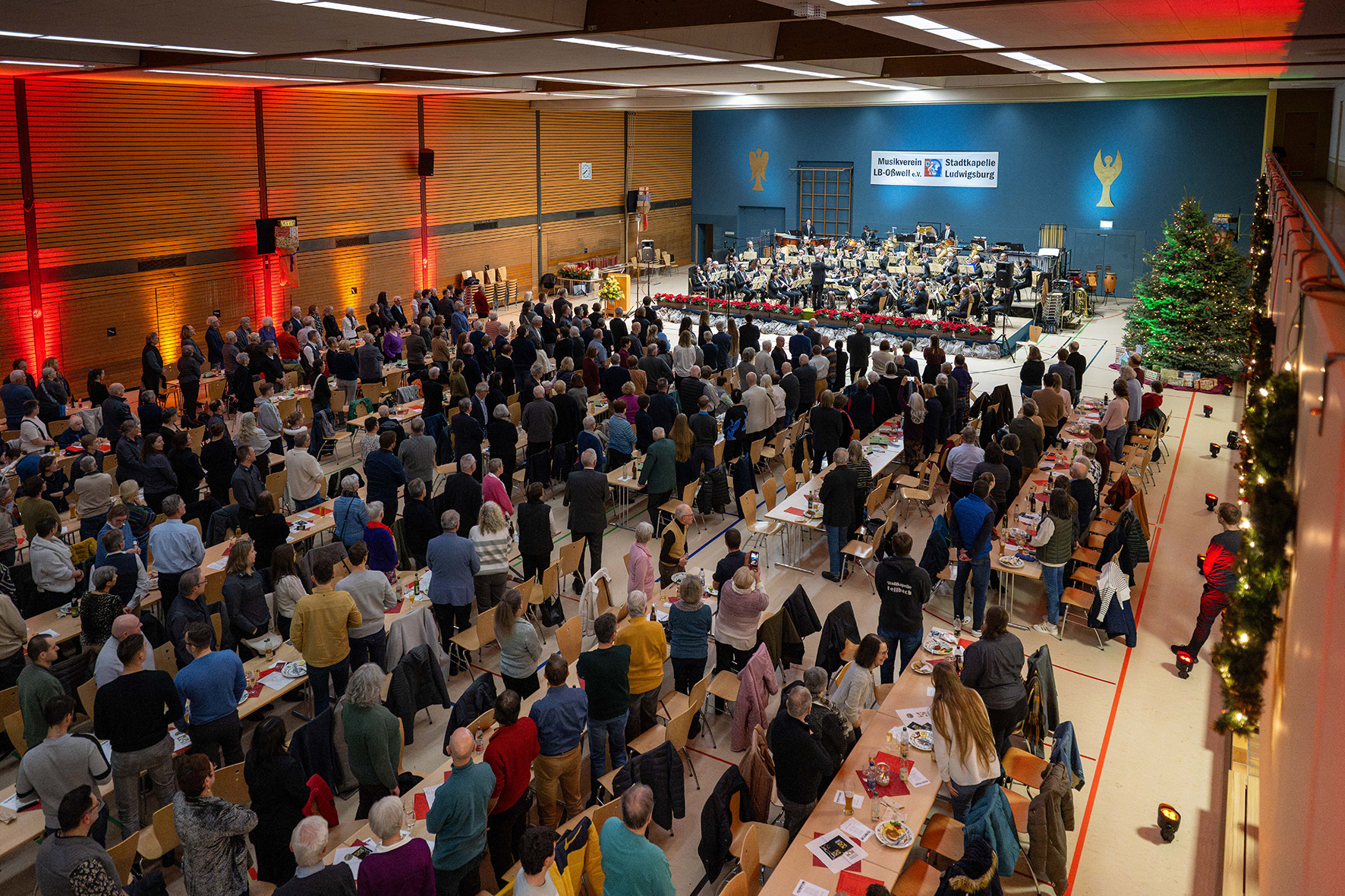 Am Samstag, 6. Dezember, fand der Abschluss des Festjahres mit gleich zwei Veranstaltungen statt: Nachmittags die Verleihung des Lucien-Tarradin-Preises im Kulturzentrum und am Abend das Doppel-Konzert der Stadtkapelle des Musikvereins Ludwigsburg-Oßweil, in der Mehrzweckhalle gemeinsam mit der Harmonie Municipale aus Montbéliard.