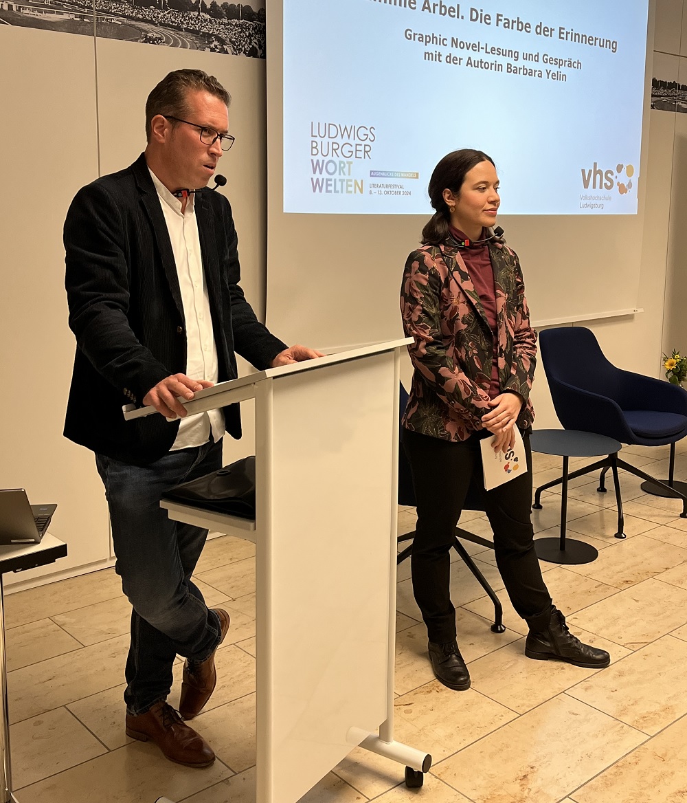 Die Comic-Künstlerin Barbara Yelin hat beim Festival WORT WELTEN im Stadtarchiv aus ihrem Buch „Emmie Arbel. Die Farbe der Erinnerung“ vorgetragen und anschließend ihre Graphic Novel für die Gäste auf Wunsch signiert.