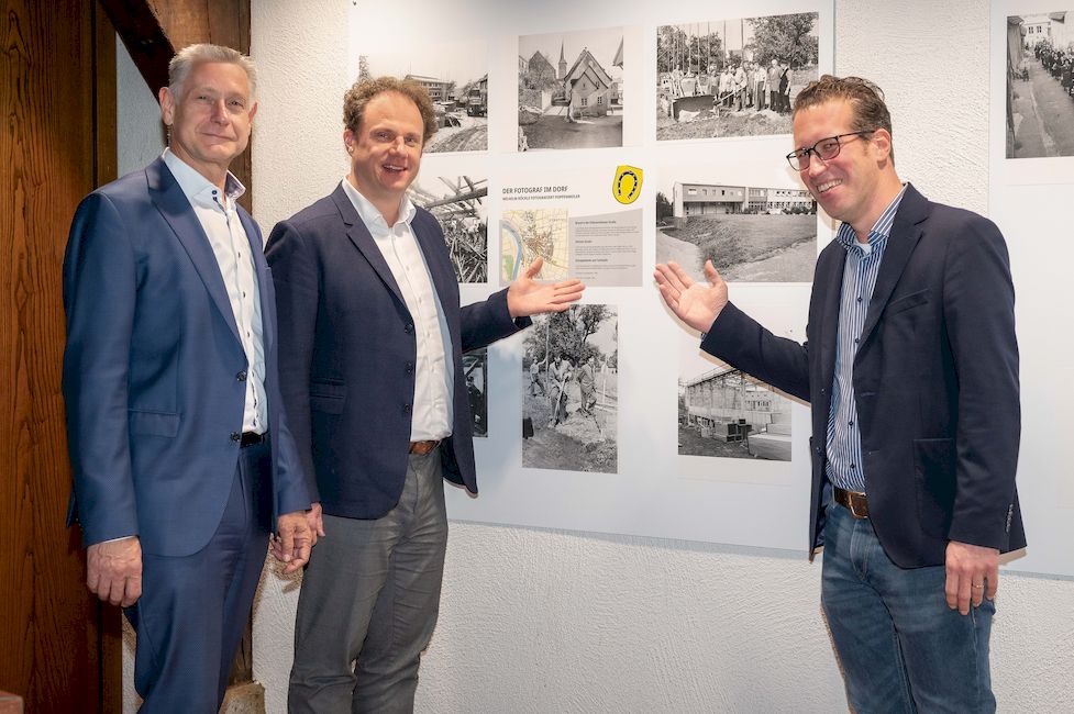 Oberbürgermeister Dr. Matthias Knecht (Mitte), Dr. Simon Karzel und Jürgen Schindler eröffneten die Ausstellung, die Aufnahmen aus den 1960er Jahren des Stadtteils zeigten.