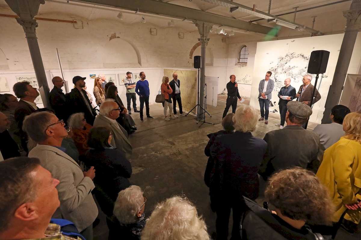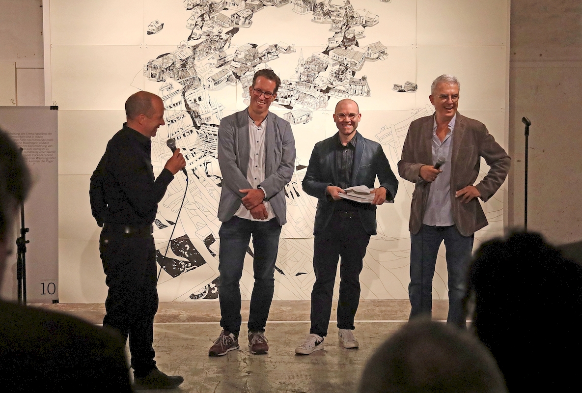 Am 22.09.2022 wurde die Ausstellung "Perspektivwechsel - ein Dialog zu Ludwigsburg" in der Karlskaserne eröffnet. Im Anschluss an die Begrüßung durch den Leiter der Kunstschule Labyrinth, Herrn Jochen Raithel, fand ein gemeinsames Gespräch mit den Kuratoren der Ausstellung, dem Leiter des Stadtarchivs Herrn. Dr. Karzel, sowie den beiden Künstlern Thomas Bickelhaupt und Wolfgang Neumann statt.