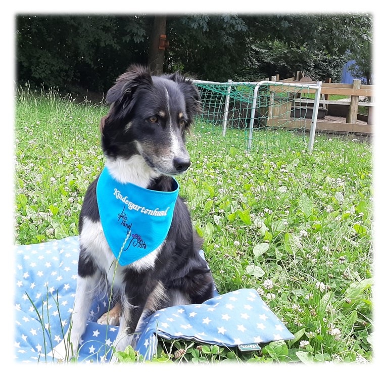 ich bin Casey, der Kindergarten-Hund der städtischen Kita Pusteblume in Poppenweiler. Ich komme einmal in der Woche in den Kindergarten und mache etwas mit den Kindern - besonders gerne spiele ich Memory. Ich habe eigene Karten mit einer Lasche zum Festhalten. Ich hole auch gerne versteckte Gegenstände aus einer Kiste.