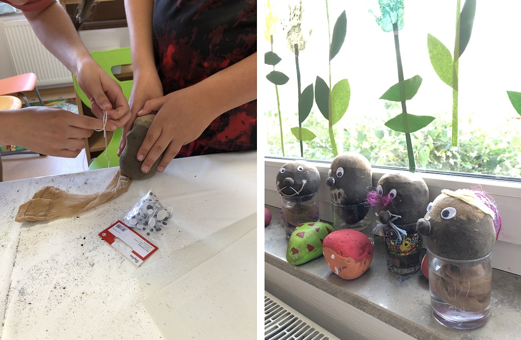 Gleich zu Beginn wurden von den Kindern eigene Grasköpfe gestaltet. Um deren Frisur mussten sich die Kinder in den kommenden Wochen kümmern. Hierbei konnten sie ihrer Kreativität freien Lauf lassen.
