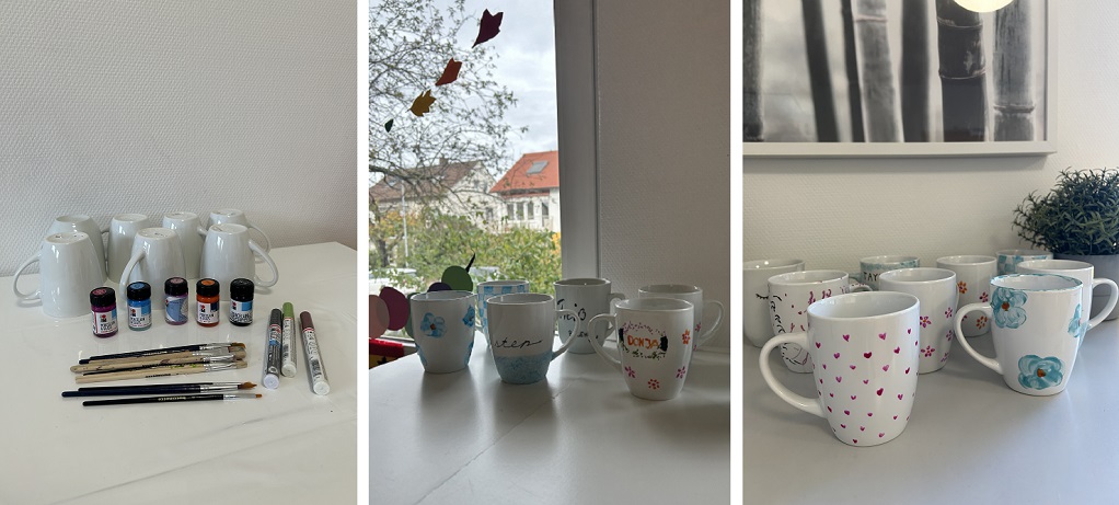 Den Abschluss des Ferienprogramms bildetet das Gemeinsame Bemalen der Tassen am Freitag. Die Tassen wurden mit Namen beschriftet, mit bunten Blumen verziert oder ganz eigenen Kunstwerken bemalt.