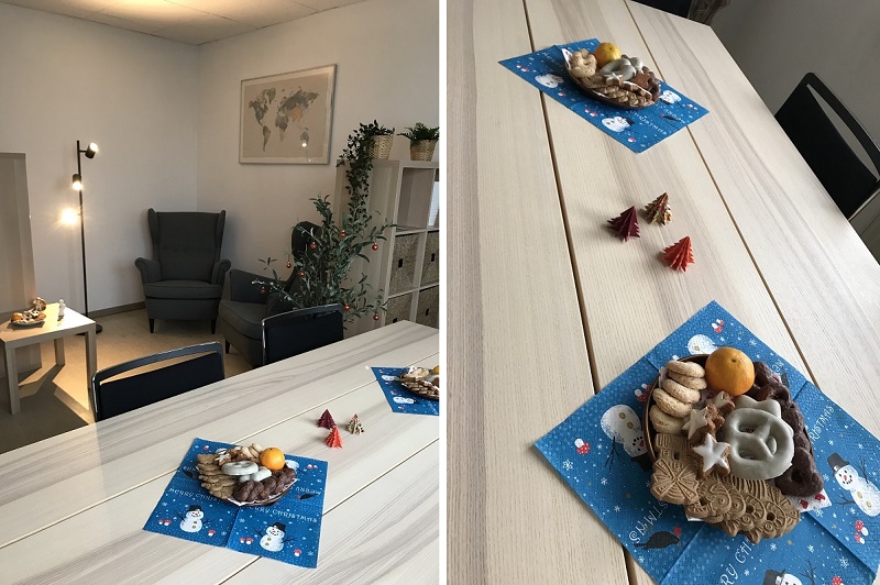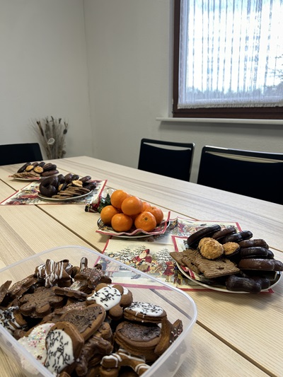 In den beiden Unterkünften konnte anlässlich der Feiertage eine Weihnachtsfeier veranstaltet werden. In der Unterkunft für Alleinstehende und Paare bot sich so die Möglichkeit, gemeinsam etwas Zeit bei Früchtepunsch und Weihnachtsgebäck zu verbringen.