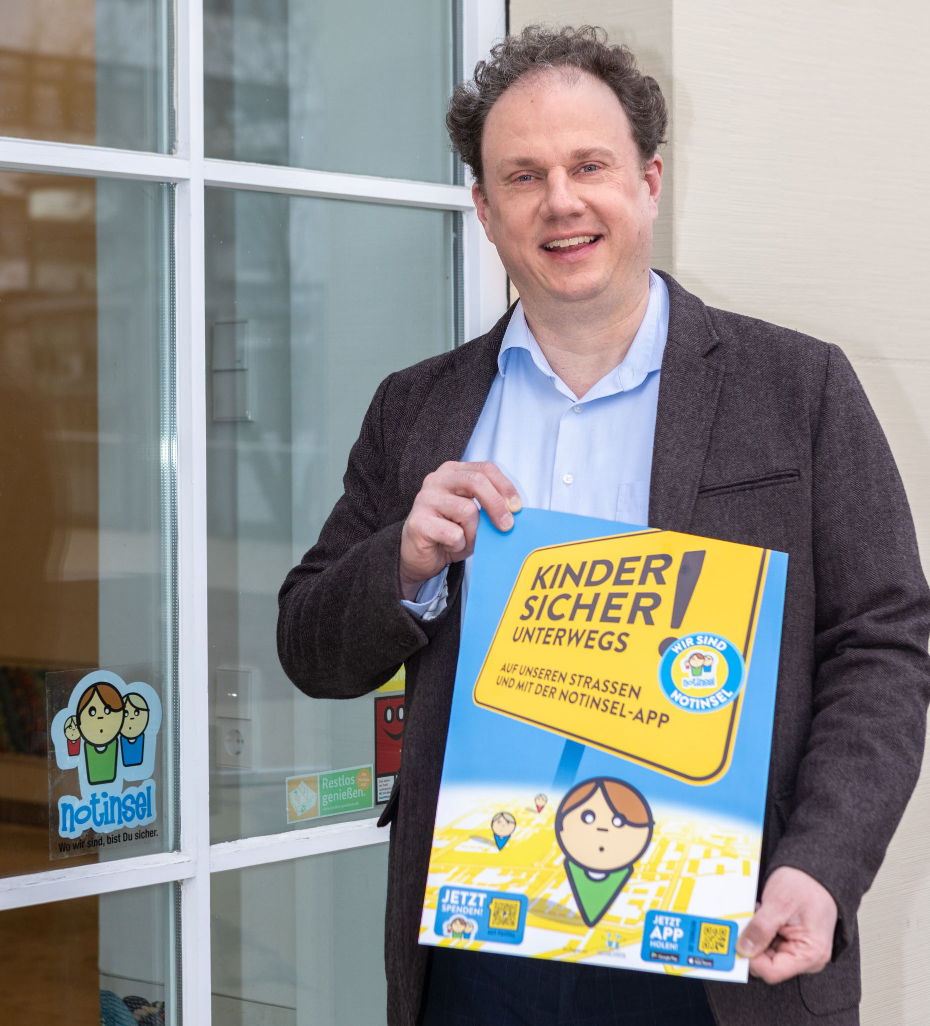 Oberbürgermeister Dr. Matthias Knecht hat den Notinsel-Aufkleber selbst gut sichtbar an der Eingangstür des Rathauses angebracht. „Uns sind Menschen aller Generationen wichtig, aber Kinder sind oft besonders schutzbedürftig. Sie sollen bei uns jederzeit Hilfe und Fürsorge finden,“ meint der Oberbürgermeister. „Es ist uns außerdem ein großes Anliegen, in Ludwigsburg ein möglichst flächendeckendes Netz von sicheren Orten für Kinder zu schaffen.“