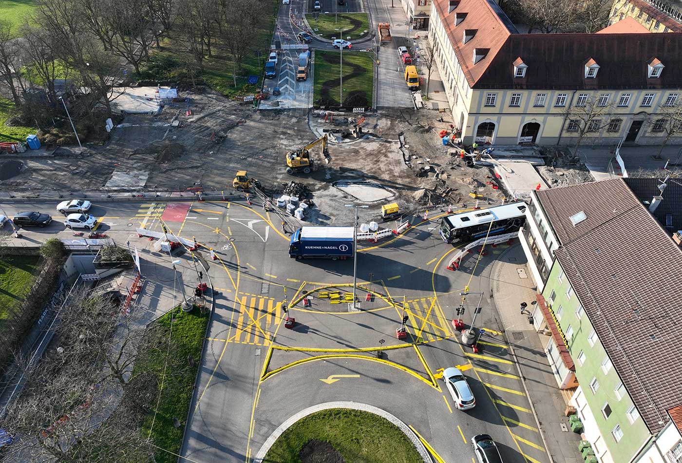 Parallel dazu wird das neue Planum, also der neue Untergrund, für den Straßen- und Wegeaufbau hergestellt.