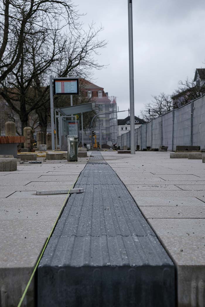 Außerdem wird ein Bodenleitsystem für Menschen mit Sehbehinderungen eingebaut. Das Leitsystem dient ihnen zur Orientierung und hilft dabei, Fußgängerüberwege, Bushaltestellen und Zugänge öffentlicher Gebäude zu finden.
